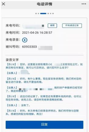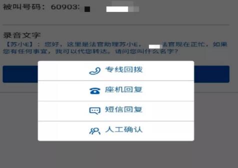 当有来电时,系统调取三大运营商用户数据叠加法院历史案件信息库,自动在信息库中检索来电人相关信息,对来电人身份信息进行智能标注,法官通过接收到的推送信息,做到心中有数,如认为当事人号码拨打错误还可将该来电转交给其他同事办理。