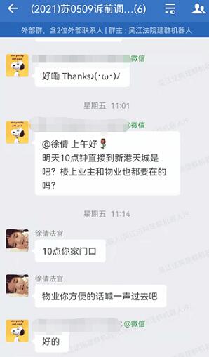 自动生成“一案一群”。机器人会为每件案件自动建立一个包含诉讼参与人、调解员、法官、书记员在内的微信群,群名随流程变化自动调整,群内可完成送达、举证、质证等活动,有任何疑问可随时在群里提出,实现沟通零距离。执行阶段还可以通过“一案一群”进行执行直播,让执行公开透明。截至2021年11月,法庭已经建立4132个案件群,累计执行直播超过69次。