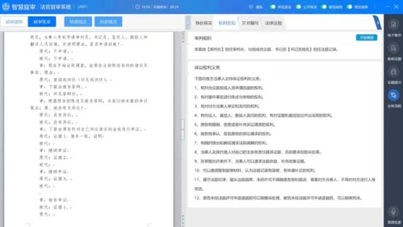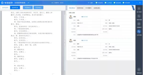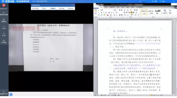 智能笔录:采用“左看右写”方式,可一键引用、拖动引用电子卷宗、法律条文、语音识别等相关内容,根据案件提供多种模板,服务书记员在线生成笔录,诉讼参与人可以在线签名。