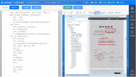 智能卷宗:对电子卷宗全流程深度应用,法官可庭前进行查阅、批注,作为庭审时审理要点,法官在庭审过程中可在线阅卷、在线提纲、在线批注。
