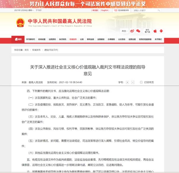 结合法律法规体现核心价值:社会主义核心价值观是一种价值理念和意识形态,其适用情形与适用方法相对模糊。因此,社会主义核心价值观可与法律法规紧密关联,结合使用。