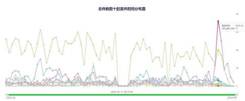 1.发现异常。本文以时间为维度,对总件数排名前十的案件重新进行排布,将案发时间与案件数量的关系进一步进行放大,经过处理,我们发现相比其他案件的小幅度浮动,涉及刑法第133条的案件数量在 2019年有了明显峰值,历月件数几乎都少于 10件,但是,在 2019年 4月案件数量却高达 72起,这一异常情况非常值得进行深入研究。