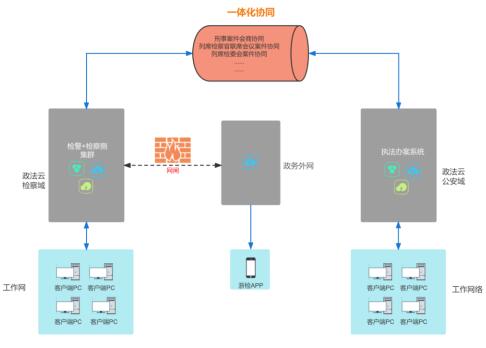 “检警+”是基于政法一体化的子场景,通过电子政务一朵云实现PC端和APP端协同,为公安机关和检察机关提供案件会商、案件通报与备案、信息通报与共享等一体化协同和系统数据交互。基于政法一体化系统,可以有效解决“检警+”试行版存在的受众面小、成本高等问题,让触角延伸到公检一线办案人员,解决了全省推广的技术限制。