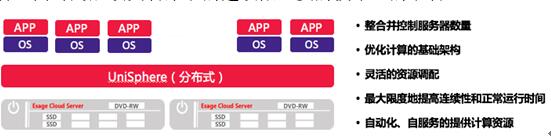 分布式存储UniStor基于分布式架构设计,能够实现Scale-Out横向扩张模式,配合独有的存储特性技术,能够满足此次云数据中心大容量,高性能的存储需求;由于利用的是服务器节点上的SSD+硬盘组合,服务器硬盘资源被充分利用起来,通过UniStor实现了一种低价高性能、高可靠的存储方案。