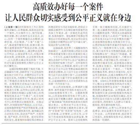 运城市院相关工作经验除被最高检2023年第一期《刑事检察工作情况》刊发外,还先后被最高检门户网站、《检察日报》、正义网等十余家媒体专题报道。