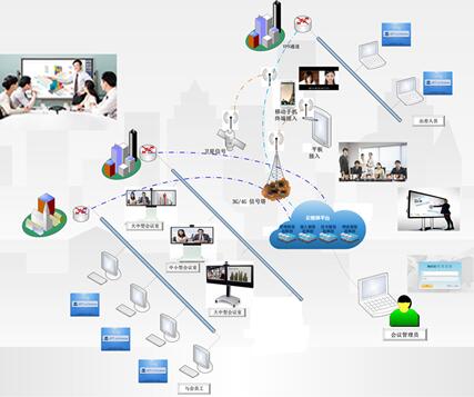 实现跨部门跨区域会议互联,即可保证本部门本区域用户之间的视频通讯,也可以保证跨部门跨区域之间的多媒体互动。