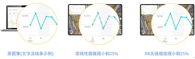 采用多相位滤波技术,图像缩小到原画面的1/16时,仍能保持画面清晰、色彩完整。