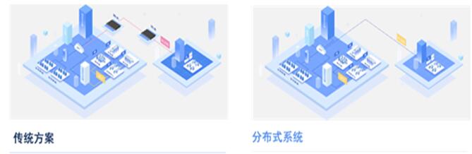 采用传统方案时,视频线缆传输距离受限,远传设备增加成本和故障点,实施难度高,维护困难。分布式系统将不同接口转换为网络信号进行传输,传输距离远、便于布线;通过IP查询即可定位节点,便于实施。