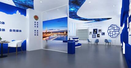 整个工作室设置演播接待区、制作工作区等两个功能区。其中,演播接待区配置声学、灯光、音视频及配套系统,可以满足视频直播、新闻采访、检察访谈、新闻发布、检察官说法、检察业务培训等多种节目制作需求;制作工作区设置演播台和采编区,配置照相机、摄像机、提词器、一体机电脑、无线网络和秒级智能语音识别等现代化技术装备。两个功能区中间设计全息3D玻璃膜作为影视投放屏幕,既可以作为区域间隔,又可以有效利用空间,采用全息屏幕可带来视觉上的感官创新。