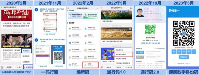 聚焦解决酒店、网吧、景区、政务大厅、内保单位等场所面临人员通行登记交叉接触、个人身份核验不实、群众办事信息难上传、纸质登记传递不便、信息数据采集不规范、数据共享难、流调溯源数据支撑少等急难愁盼问题,湖南省公安厅多码合一改革历经多个阶段:2020年2月,全省部署“入湘车辆人员信息网上登记”;2021年11月,全省上线场所登记的“一码行湘”;2022年2月,全省推广用于疫情防控的场所码;2022年5月,“一码行湘”更名为“通行码”,应用于湖南公安管辖领域;2022年10月,通行码整合场所码、健康码、行程卡以及其他政府部门的业务码等内容;2023年5月,通行码融合身份证、驾驶证、居住证等证照信息为1个码,通过分级分类分人分区分码实现对数字资源的物理整合,打造独特安全可靠的“便民数字身份码”。同时,规划将停车收费码、公交地铁乘车码、商家付款码等合入一码。
