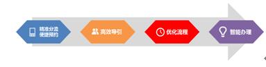 通过对服务大厅进行科学的功能区域划分,配合基于人工智能、数据分析的智能引导,实现迅速的服务分配