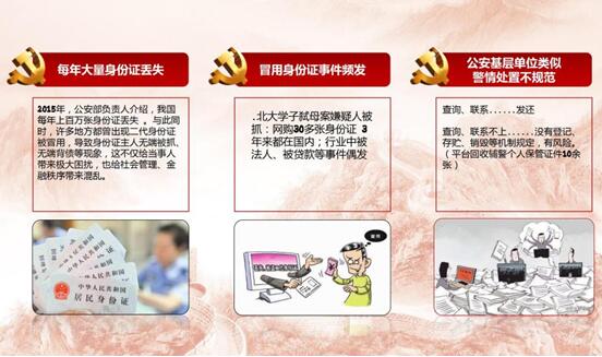 一是每年大量居民身份证丢失.据悉我国每年有近200万张身份证丢失或被盗,二代证推广使用已有近15年,估算有近3000万失证,其中有很大一部分存在管控风险。许多地方出现二代身份证被冒用,导致身份证主人无端被抓、无端背债等现象。给当事人带来困扰,也给社会管理、金融秩序带来混乱。