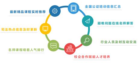 平台集结了公证、律师、司法鉴定、社区矫正等法学界知名的专家学者,致力于为政府部门、工会组织、高等院校、行业协会、企事业单位和其他社会组织提供高质量、体系化的理论与实务、基础与高阶、法律职业周边等多视角课程,为各专业领域的法律专家与广大法律工作者搭建桥梁,培养高素质、高水平的法律专业人才,构建高参与度的行业学习、交流、合作、共享平台。