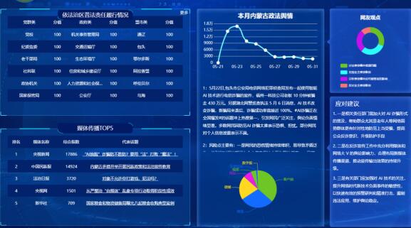 全网抓取涉法热点话题,根据阅读量、转发量、评论量等多维度分析,得出热点话题传播指数,展示涉法信息传播指数TOP5排行榜,便于各级司法行政机关、普法责任主体围绕热点话题开展相关普法宣传,提升普法宣传吸引力,提高普法工作实效。抓取当月涉内蒙古自治区重点舆情案例,通过分析事件发展趋势、传播分析、网民观点梳理等进行研判,提出针对舆情开展普法宣传建议。同时,平台每月生成《普法需求分析报告》,为各级普法责任主体普法工作提供参考。
