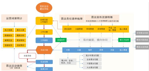 平台通过统筹管理,定向分发等方式管理全市普法活动、法治文化作品征集、以案释法案例发布等数据的统计、创建和使用,并通过对接公众数据平台管理新法速递、以案释法案例库。通过云存储的方式管理普法重要文件材料、普法业务文件等信息,系统对接珠海普法在线网站、智慧司法小程序,直接对外进行普法宣传。系统全面提升了各单位在普法过程中对资源的充分应用和数据管理能力,加强了全市普法服务工作水平,提高了普法活动的社会知晓率和影响力。