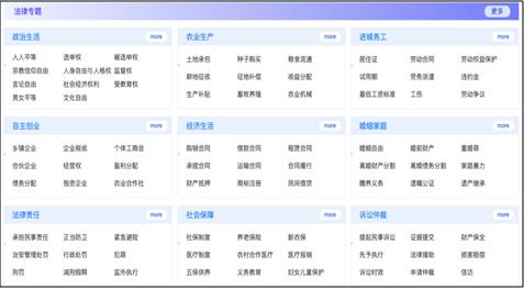 5.普法问答:精选宪法、民商法、刑法、行政法、经济法、诉讼与非诉讼程序法等专业法律知识普法问答对,通过多级导航的方式提供知识解答。