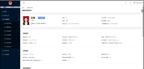 建立人民调解组织队伍管理体系,包括调解组织的设立、撤销,人民调解员的入职、解聘等一系列组织机构管理,为管理者实时掌控当前调解员专职调解员占比、派驻调委会建成率、街镇组建的品牌调解室覆盖情况提供支持,有效推进陕西人民调解“三年行动方案”落地落实。