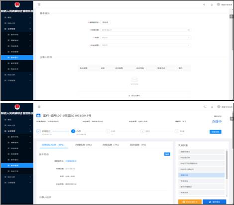 搭建人民调解全业务领域的综合平台,以业务流程为控制节点,通过监控当前调解业务进展情况与办理详情,保证调解业务的规范化,提升工作效能。
