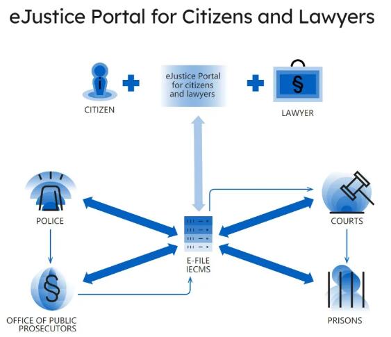 在搭建全国性办公办案信息化系统之前,爱沙尼亚政府于2005年开始开发电子档案系统(e-File),以作为信息化流程开展的基础。使用该系统,诉讼参与人只需安全地验证自己的身份并进入电子司法平台后,就可以在线提交任何类型的案件。作为一个综合系统,电子档案系统可以使信息在警察、检察、法院、监狱、法律援助、税务和海关委员会、国家共享服务中心等不同的系统之间进行交换。