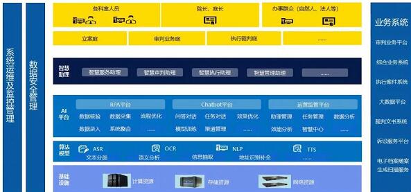 平台融汇打通审判业务平台、综合业务系统、执行案件系统、大数据平台、裁判文书系统、诉讼服务平台、电子档案随案生成扫描服务等业务系统,解决数据孤岛难题。同时,把系统变得智能化、自动化,在提供数字劳动力的同时,保证系统和数据的安全。