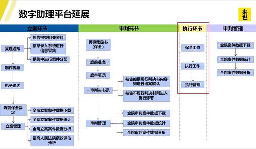 除执行环节外,在立案、审判、审判管理环节,以及法院的人事、财务等各个部门,数字助理都有发挥作用的空间。